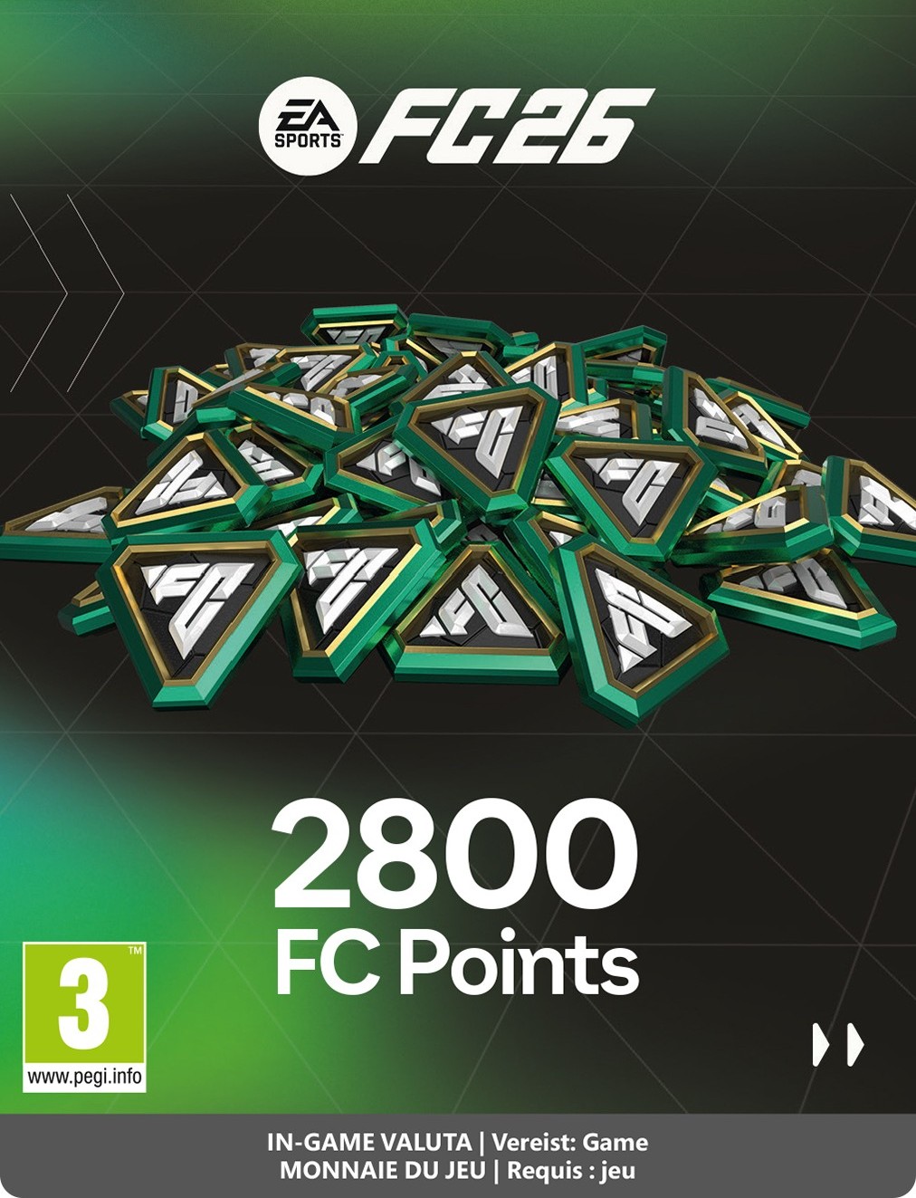 Очки EA Sports FC 26 — это виртуальная валюта, которую можно использовать для покупки наборов, игроков и других предметов в EA Sports FC 26. Этот продукт добавит 2800 монет (FC) к вашей версии игры для ПК.