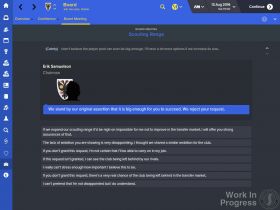 - Общение с Прессой - Пресс-конференции стали намного более разнообразными. Были добавленые новые темы для разговоров с прессой, а также переработана система вопросов и ответов, которая теперь стала более контекстуальной. В добавок, безработные менеджеры теперь могут использовать медиа-интервью для того, чтобы вернуться в бизнес.