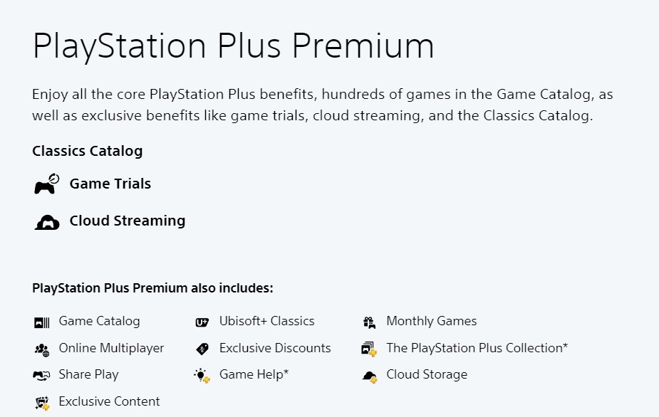 - Облачный стриминг - Наслаждайтесь стриминг доступом к большому количеству игр для PS4 из каталога игр, а также к сотням игр для PS3, PS2 и других игр из каталога классики на PS5, PS4 и ПК.