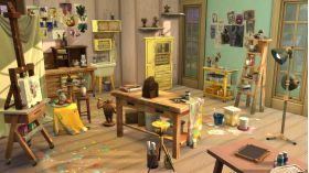 Создайте идеальную обстановку для развития творческих навыков симов с комплектом «The Sims 4 Художественная мастерская». Вокруг мольберта искусно расположились ваши рабочие инструменты: кисти, банки с краской, реквизиты для натюрмортов и многое другое. А ваша мастерская является отражением вашей личности — беспорядок в ней, ящички и полочки, даже брызги краски — ведь вы оставили здесь свой след, как и на холсте.