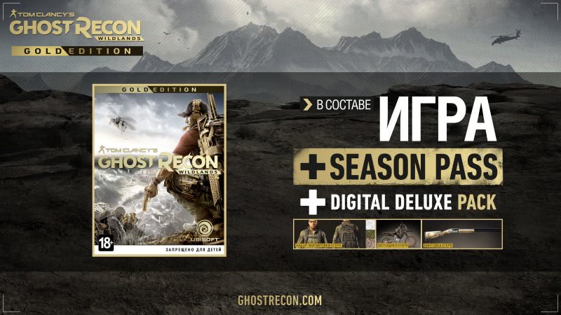 - Ghost Recon Wildlands Season Pass, предоставляющий доступ к двум предстоящим дополнениям к игре