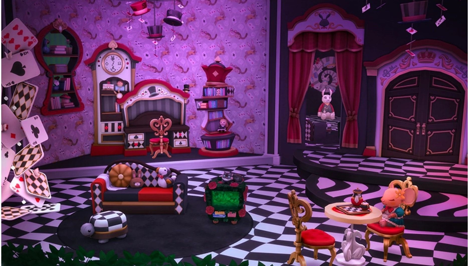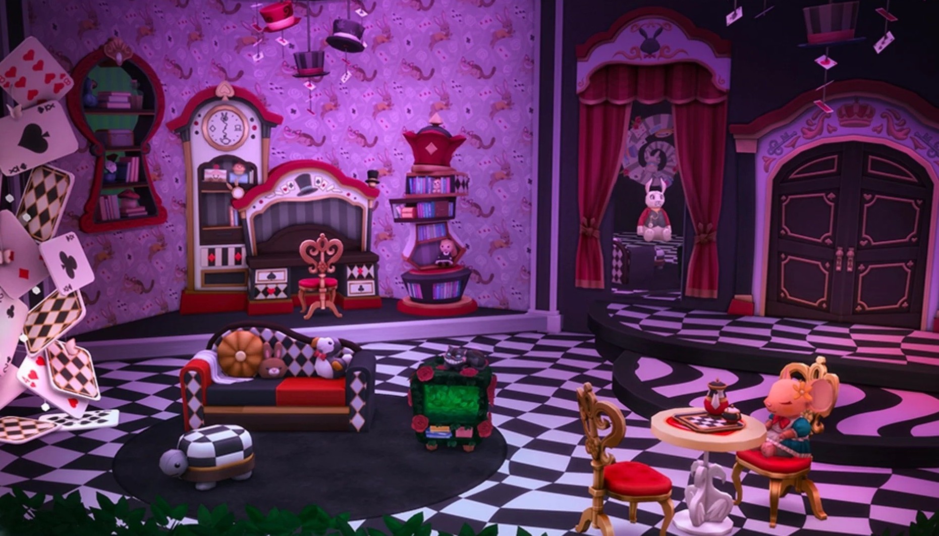 - Всё чудесатее и чудесатее: очаровательный плюшевый кролик, висящие цилиндры и настенный декор с изображением птиц додо или улыбающихся котов — это лишь некоторые из способов, с помощью которых этот набор перенесет вас в мир, одновременно знакомый и фантастический
