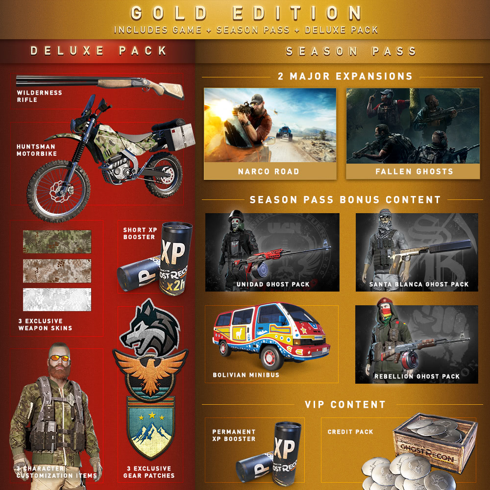 - Devenez "Ghost" - Les "Ghosts" sont une équipe légendaire d'opérations spéciales d'élite américaine. Envoyé derrière les lignes ennemies pour faire des ravages et briser les alliances entre le cartel et le gouvernement corrompu, vous éliminerez le vicieux cartel de la drogue de Santa Blanca derrière les lignes ennemies.