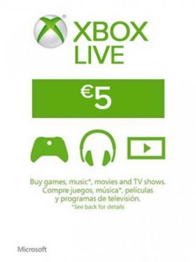 Предоплаченная карта, позволяющая пополнить счет на 5 евро для европейской версии аккаунта Xbox Live. Данная карта позволяeт приобретать дополнительные игры, услуги или игровой контент в любой точке мира. Для этого достаточно подключить консоль к сети интернет и войти на Live Marketplace.